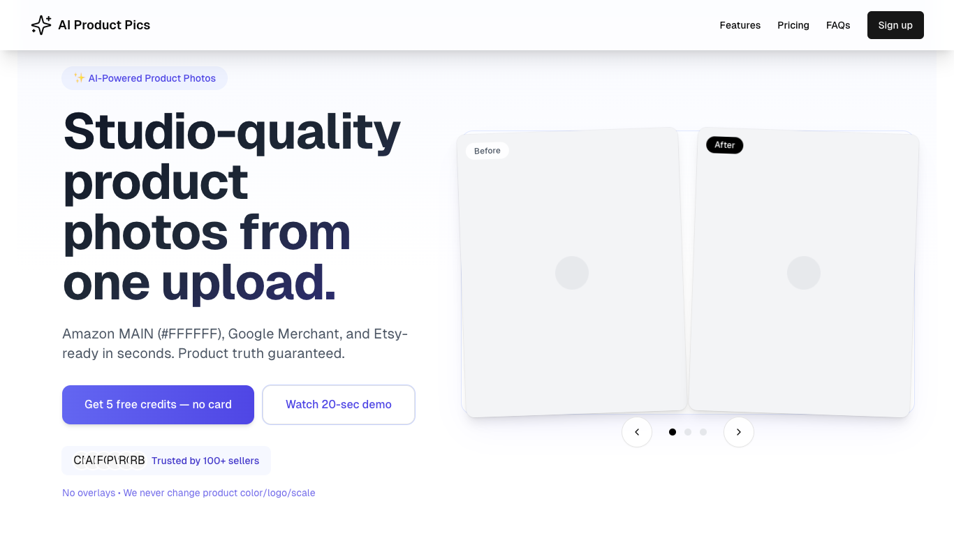 AI Product Pics is an AI-powered image generation platform designed specifically for e-commerce sellers and marketers. It transforms ordinary product photos into professional, studio-quality images that are compliant with major online marketplaces.