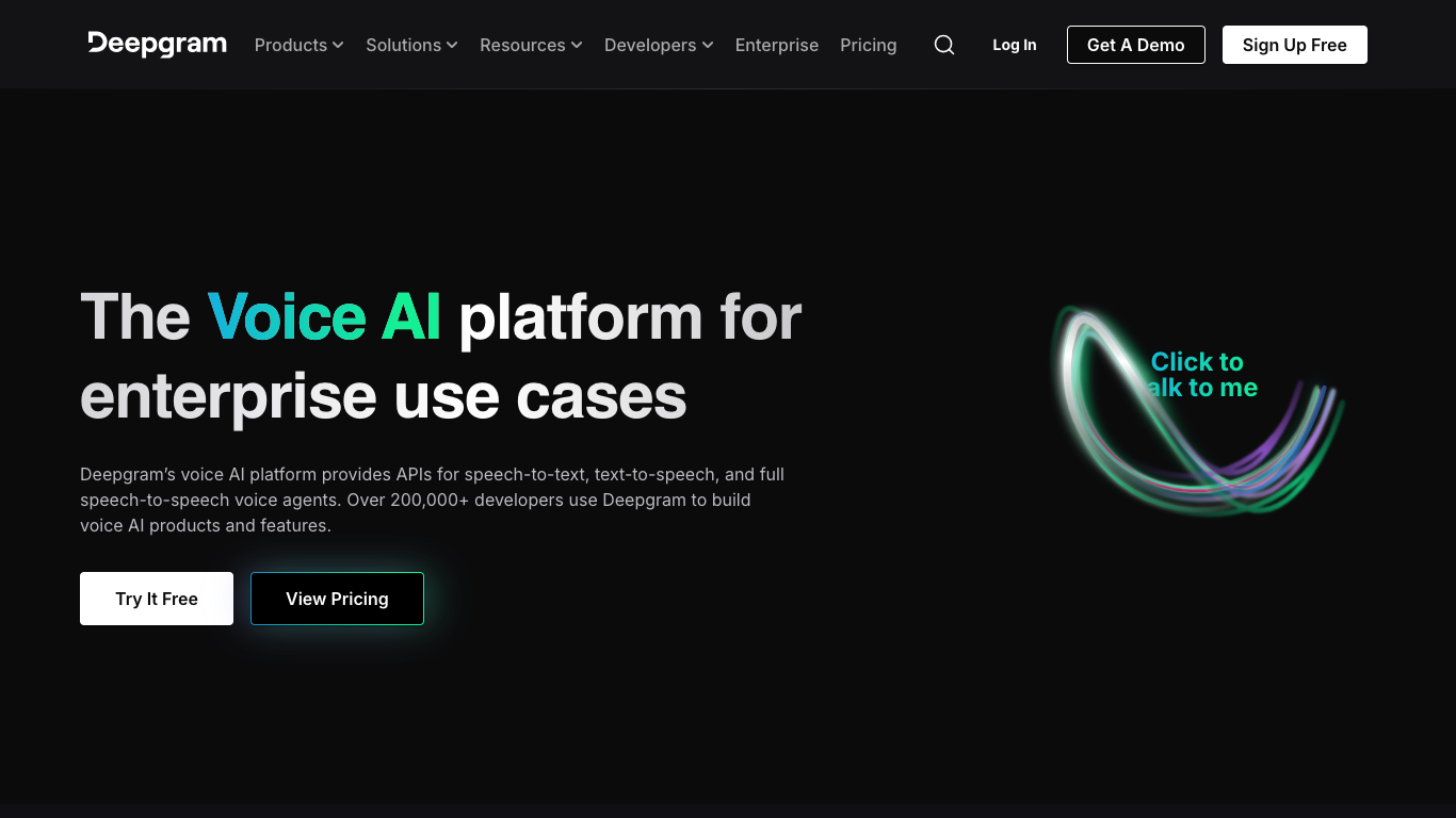 Deepgram is a voice AI platform that provides APIs for Speech-to-Text, Text-to-Speech, and Voice Agent functionalities, designed for enterprise use.