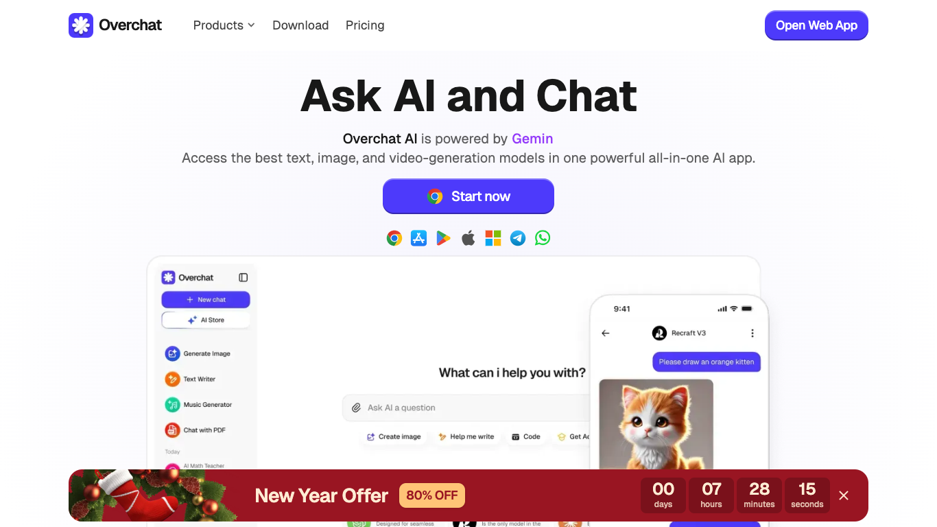 You can access it through the Overchat AI web platform or by downloading the official mobile app from the iOS App Store or Google Play Store. All platforms are synchronized, allowing you to continue conversations seamlessly across any device.