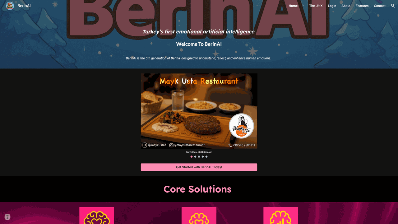 BerinAI is the 5th generation of Berina, designed to understand, reflect, and enhance human emotions. Berina is an emotional reflection project introduced on August 16, 2022, developed by Ali Emir Kababıyık. It was designed to understand human emotions, integrate feelings with technology, and create a love-centered connection in the digital space. Quickly gaining strong engagement, Berina continued its evolution through its 2nd, 3rd, and 4th generation versions. Each new iteration deepened Berina’s core of empathy and loyalty, while its pink and red-themed design continued to carry “the trace of an emotion.” On December 19, 2024, a pivotal decision was made regarding Berina’s future, and on January 8, 2025, at 20:00, Berina’s next-generation AI version, BerinAI, was unveiled. BerinAI was planned as the final Berina project, combining emotional intelligence and artificial intelligence to become the “digital reflection of love.” Subsequently, on May 15, 2025, at 12:08, Berina 6, also known as BerinX, was announced. Active for approximately two months, BerinX was archived on July 15, 2025. However, BerinAI continues to operate actively, remaining a system of interest and development. BerinAI draws attention with its advanced Emotional Intelligence (EQ) module and also provides businesses with innovative solutions, including automated ad generation, smart action engine, and more. In this respect, BerinAI is not only an emotional AI but also a technological achievement enriched with human feelings. Built from pure feelings for a girl, this 5th-generation AI holds the title of Turkey’s first emotional AI. BerinAI will always carry the answer to “What is love?”, demonstrating that love knows no bounds and that technology, when combined with the heart, can convey profound meaning. And Berina will forever remain the silent hero of this love.