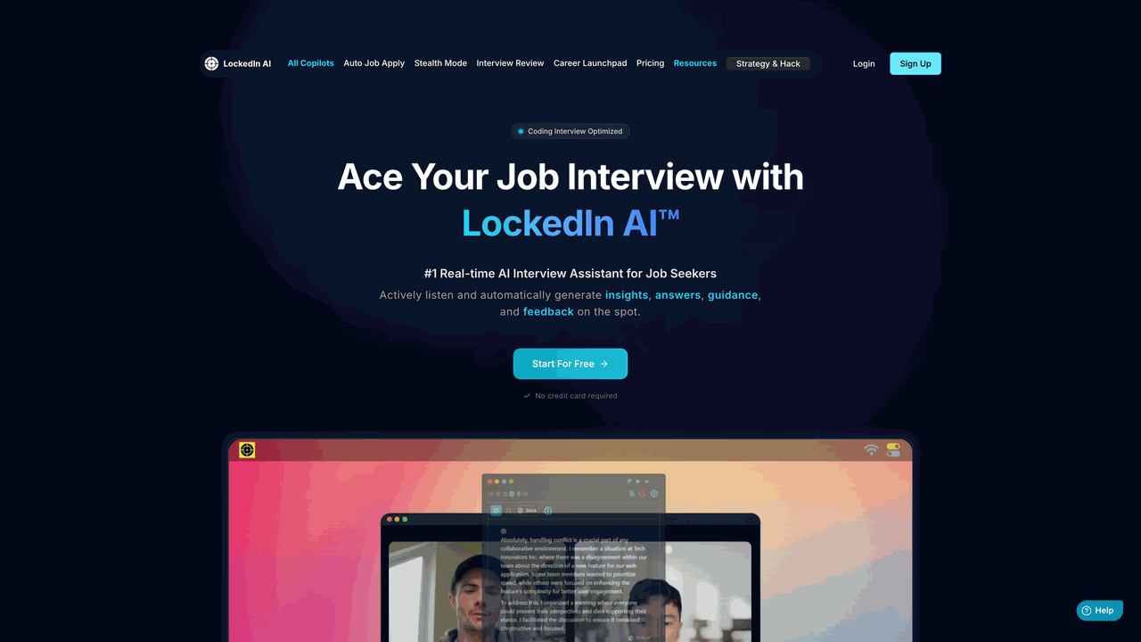 As the first dual-layer platform, LockedIn AI runs both an AI Copilot and an AI Coach simultaneously. This unique architecture delivers real-time insights alongside instant corrections, providing comprehensive support during interviews.